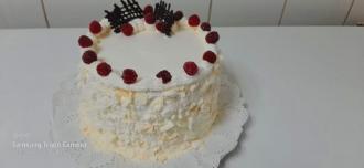 Discos de merengue artesanal, relleno de crema vegetal y frambuesas naturales, cubierta en crema vegetal.